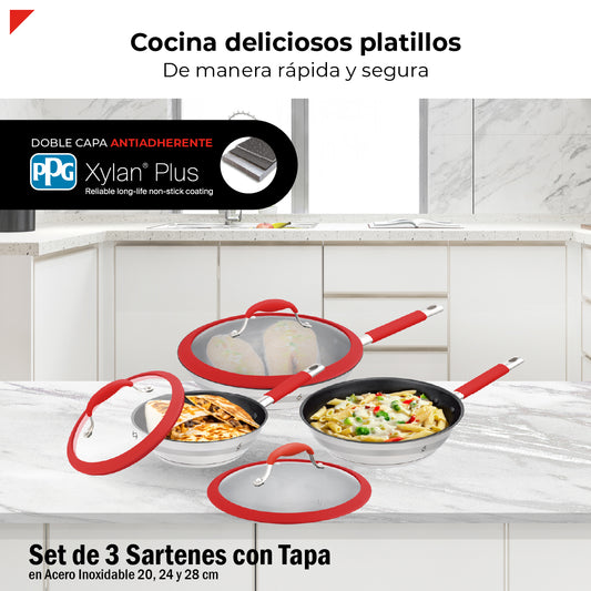 Bogner Set De 3 Sartenes Acero Inoxidable BFPR06