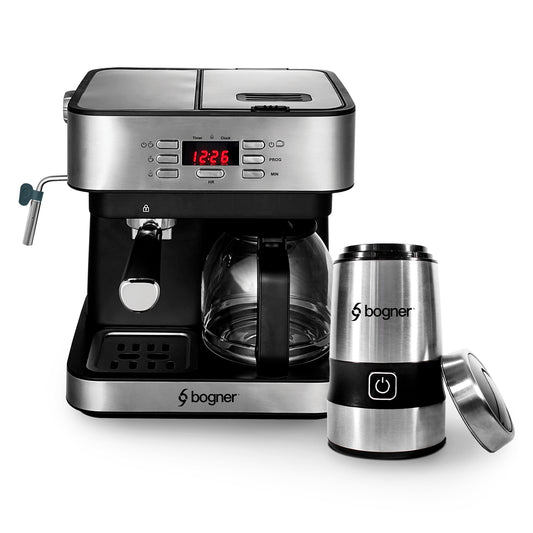 Cafetera Espresso Bogner Capuccino 4 Tazas + Molino de Alta Potencia
