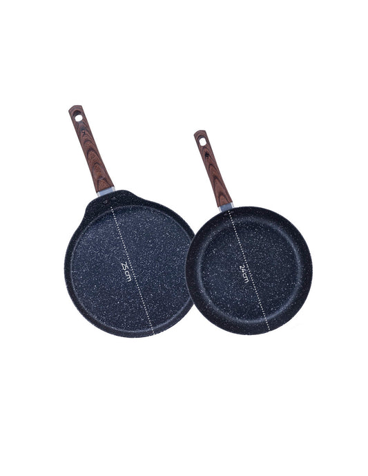Set de Comal y Sartén 24 y 25 cm de granito y madera con doble antiadherente