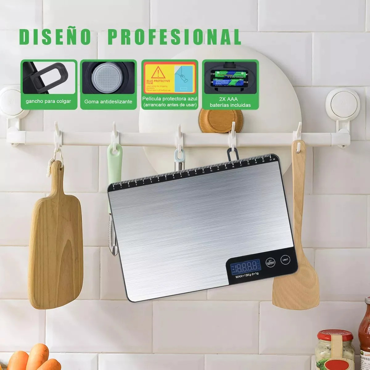 Bogner Báscula Digital Cocina Inoxidable 15kg Precisión 1g