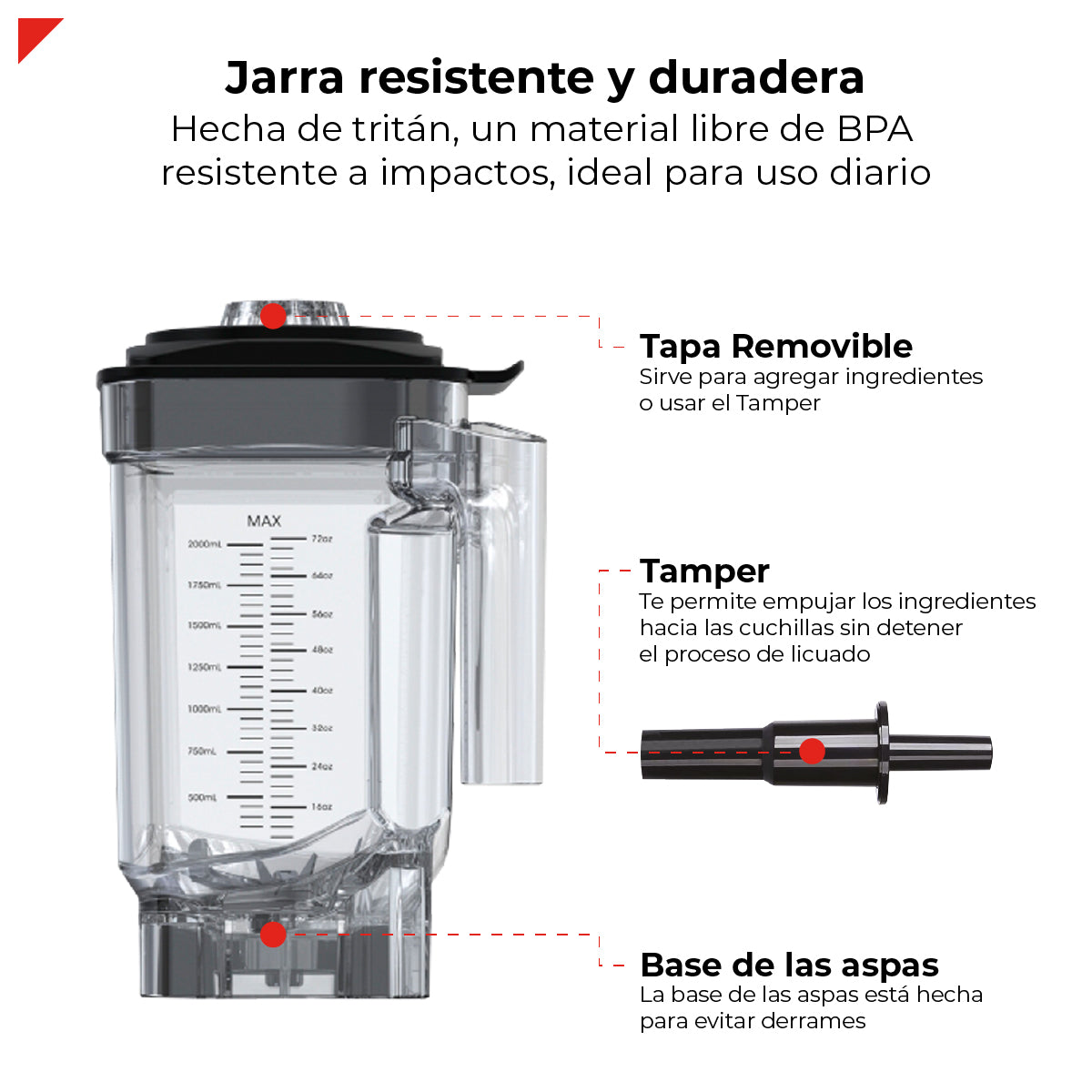 La licuadora comercial Bogner BSB07N combina potencia profesional con materiales de alta calidad. Con 2500 watts y 3.35 caballos de fuerza, ofrece un rendimiento excepcional para smoothies, frappés y moler hielo. Su jarra de Tritán de 2 litros es resistente, libre de BPA y fácil de limpiar. Cuenta con controles intuitivos, funciones programables y sistema de seguridad contra sobrecalentamiento. Ideal para negocios o uso doméstico intensivo, con respaldo de 2 años de garantía.