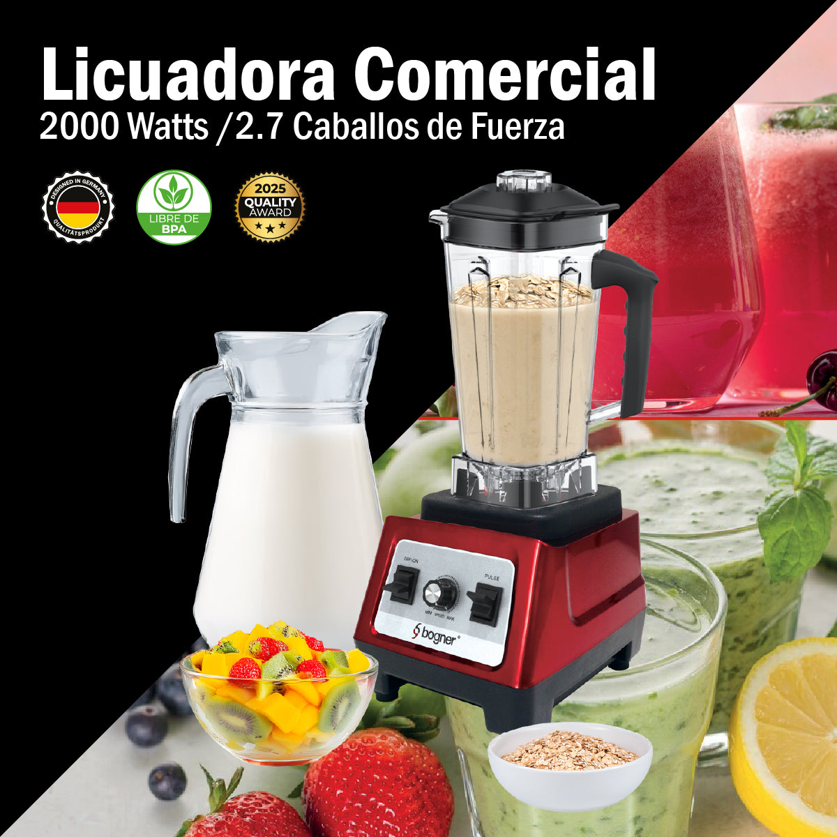 Bogner Licuadora Comercial 2000w 2l Tritán BSB08S