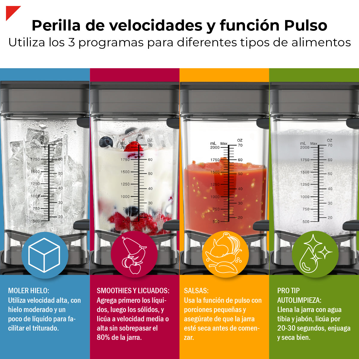 Licuadora BSB09S de alto rendimiento con 3000W de potencia, jarra irrompible de 2L, 3 programas automáticos y cuchillas de acero inoxidable con revestimiento de titanio. Ideal para smoothies, hielo y salsas.