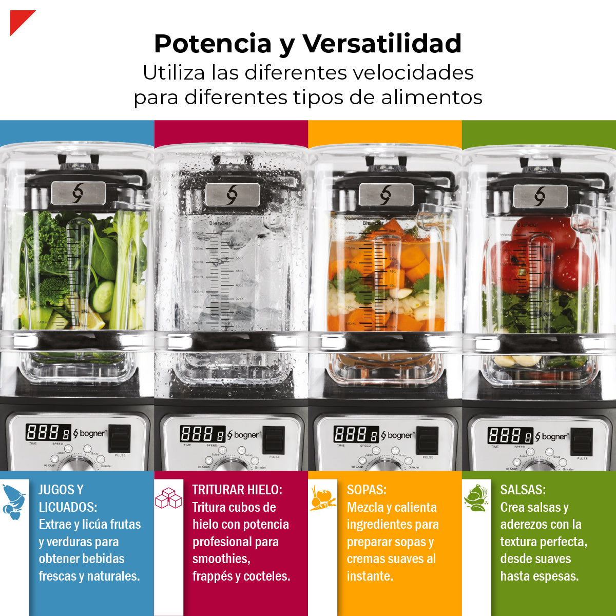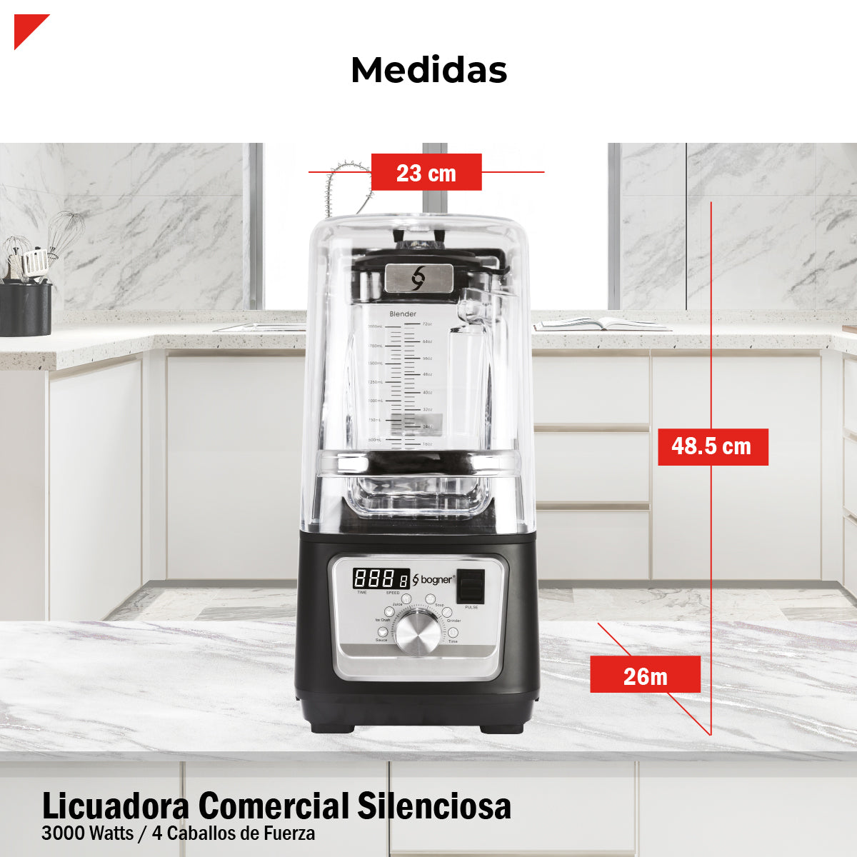 Bogner Licuadora Comercial Silenciosa BSSB01 3000W (4 HP) con Cubierta Antiruido, Jarra de Tritán 2L, 6 Programas, Panel LED y Función Pulso