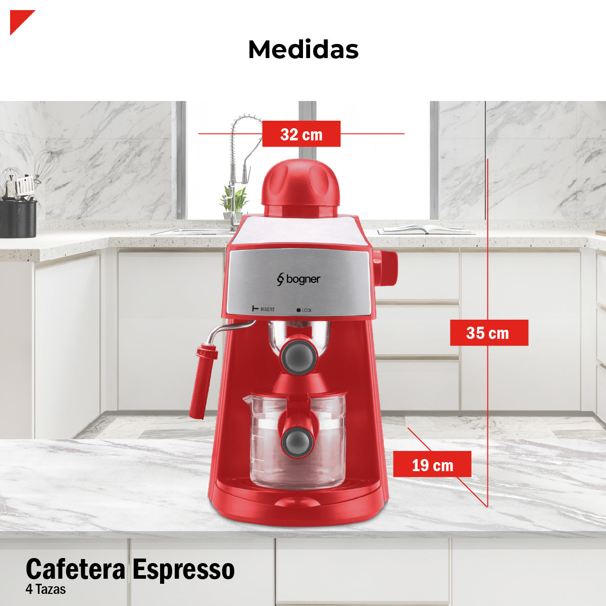 Bogner Cafetera Espresso 4 Tazas Con Espumador BCM35R